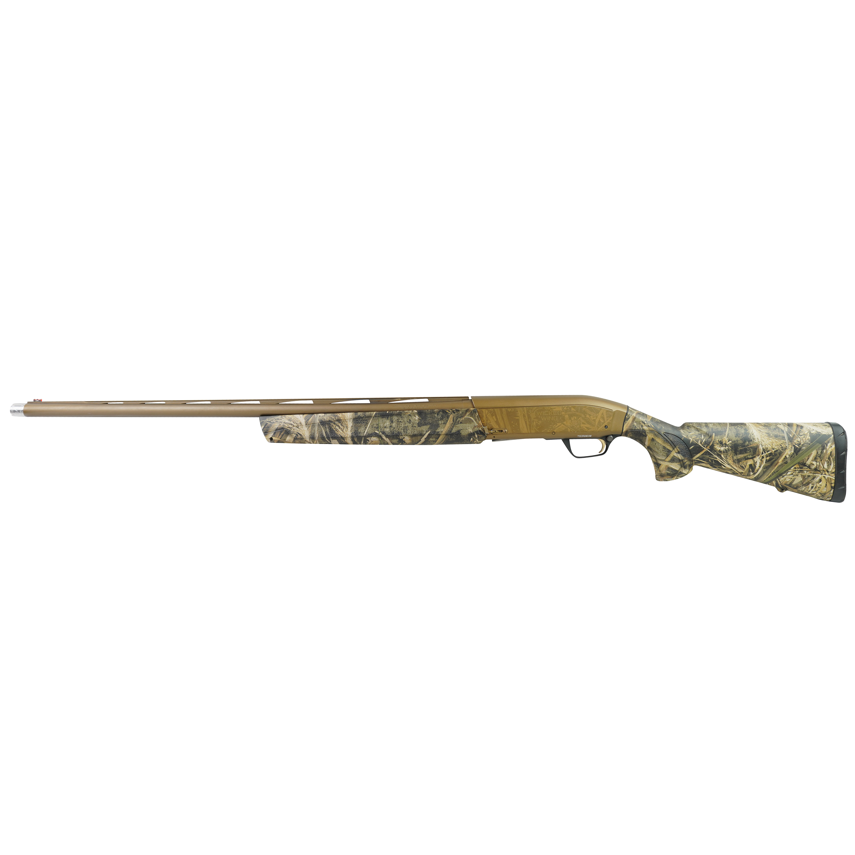 - Semi-Auto, 12 GA X 3.5″, 28″ Barrel, 2 Goose Band Chokes, Burnt Bronze Cerakote Finish On Barrel & Receiver, Synthetic Stock & Forend With Max-5 Camo