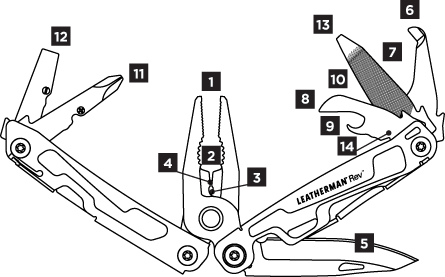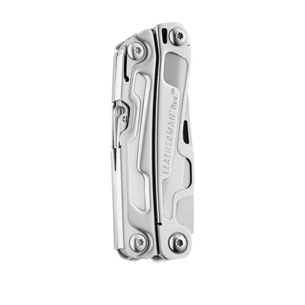 - Introducing The Leatherman REV. This All-New Multi-Tool Allows You To Grab A Toolbox Full Of Functionality And Keep It At Your Fingertips, No Matter Where You Might Be: Under The Hood, At The Campground, Finishing Honey-Do Projects Around The House Or Cracking Open A Cold One At The Tailgate. The REV Features 14 Soon-To-Be-Indispensable Tools, An Outside Accessible 420HC Blade And A Replaceable Pocket Clip For Easy Carry, And As Always Is Backed By The Leatherman 25-Year Warranty.