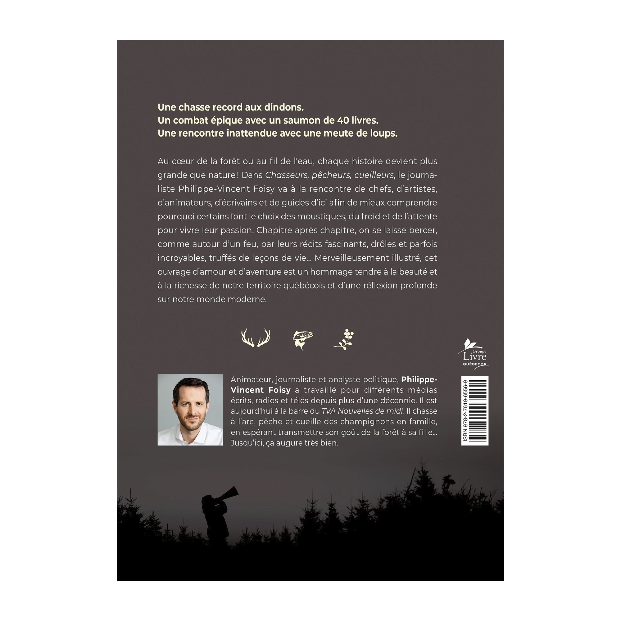 Au cœur de la forêt ou au fil de l’eau, chaque histoire devient plus grande que nature! Dans Chasseurs, pêcheurs, cueilleurs, le journaliste Philippe-Vincent Foisy va à la rencontre de chefs, dartistes, danimateurs, d’écrivains et de guides dici afin de mieux comprendre pourquoi certains font le choix des moustiques, du froid et de lattente pour vivre leur passion. Chapitre après chapitre, on se laisse bercer, comme autour dun feu, par leurs récits fascinants, drôles et parfois incroyables, truffés de leçons de vie… Merveilleusement illustré, cet ouvrage d’amour et d’aventure est un hommage tendre à la beauté et à la richesse de notre territoire québécois et d’une réflexion profonde sur notre monde moderne.
